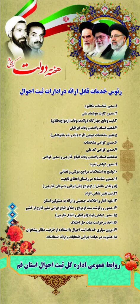 وی همچنین به برخی از خدمات جدید اداره ثبت احوال اشاره کرد و خبر داد که به زودی انحصار وراثت در اداره ثبت احوال به صورت خودکار انجام خواهد شد.